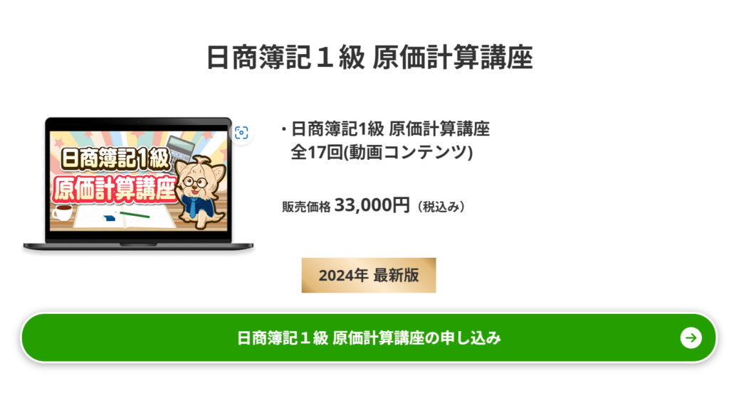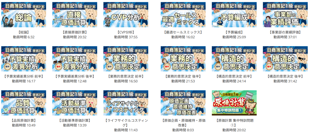 私は簿記1級の勉強を始めた頃、たぬ吉さんの原価計算の講義を購入しました。