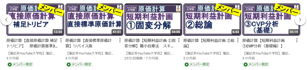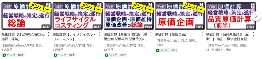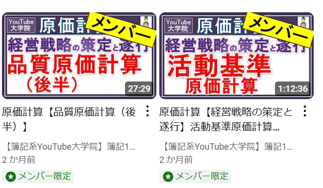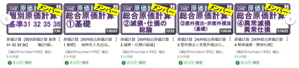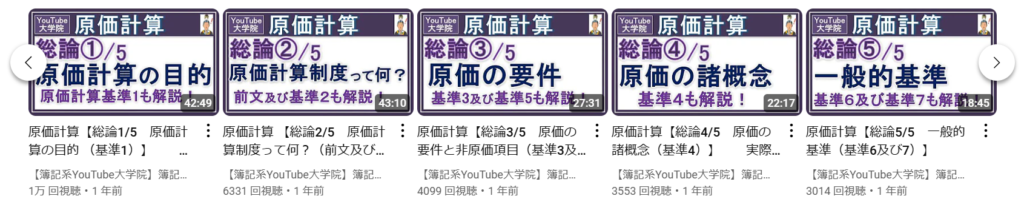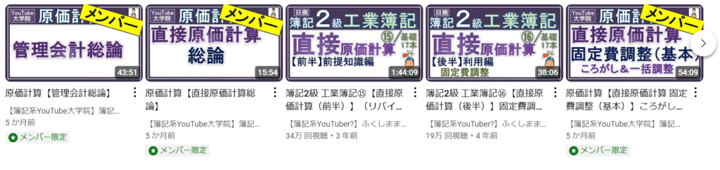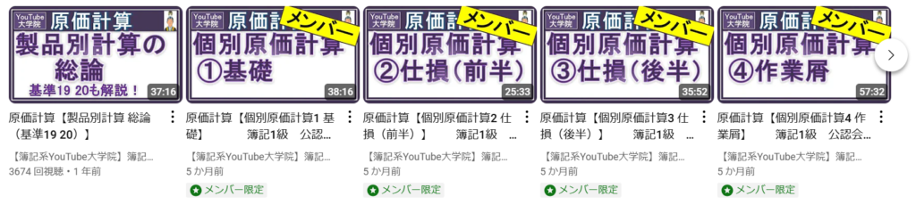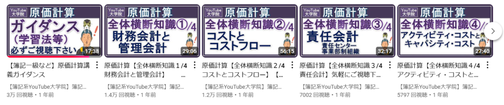 工業簿記講座に関してはYouTubeで無料で視聴できます。