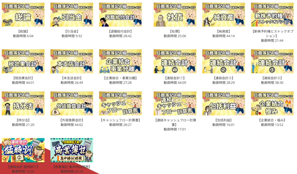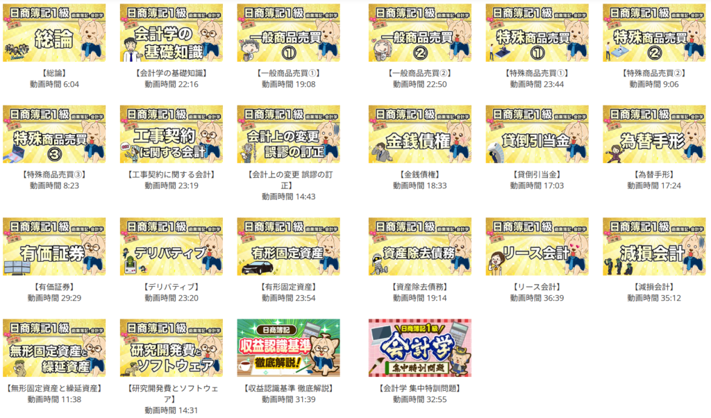 商業簿記の分野に関しては今後開講するのかというのは不明ですが、4つほど豆知識的な動画があります。