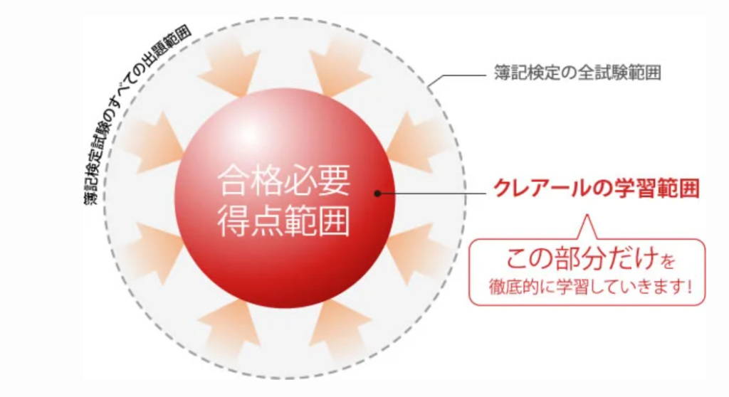クレアールは資格指導歴55年の資格指導Webスクールで、非常識合格法の理念に基づき、最小の費用・最小の労力・最短の期間で簿記検定1級に合格できるWeb講座とサポートを売りにしています。
