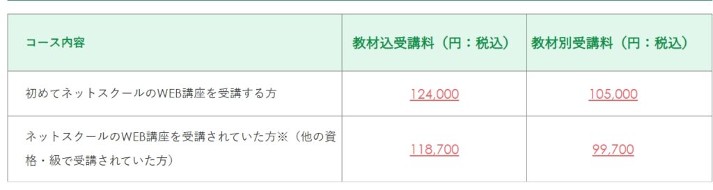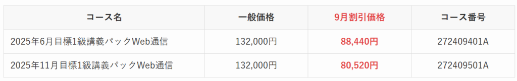 | 1級パーフェクトコース | 132,000円 | 156,200円 |