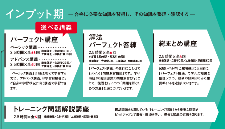 | インプット講義 | テキストによる講義を通して各論点の基本的な会計処理を学びます。 | 商会:ライブ講義+オンデマンド 工原:オンデマンド テキスト※ 動画ダウンロード |